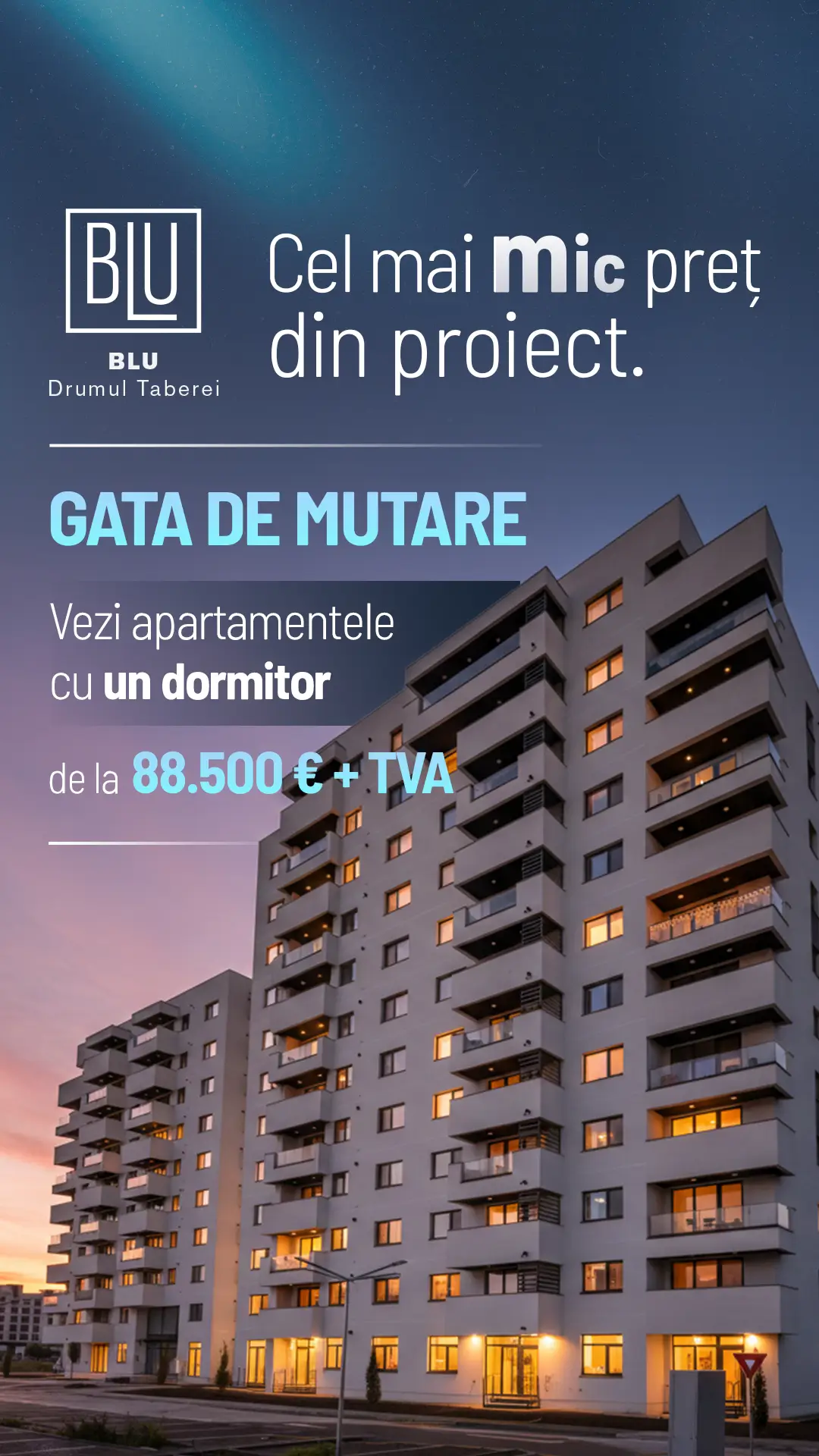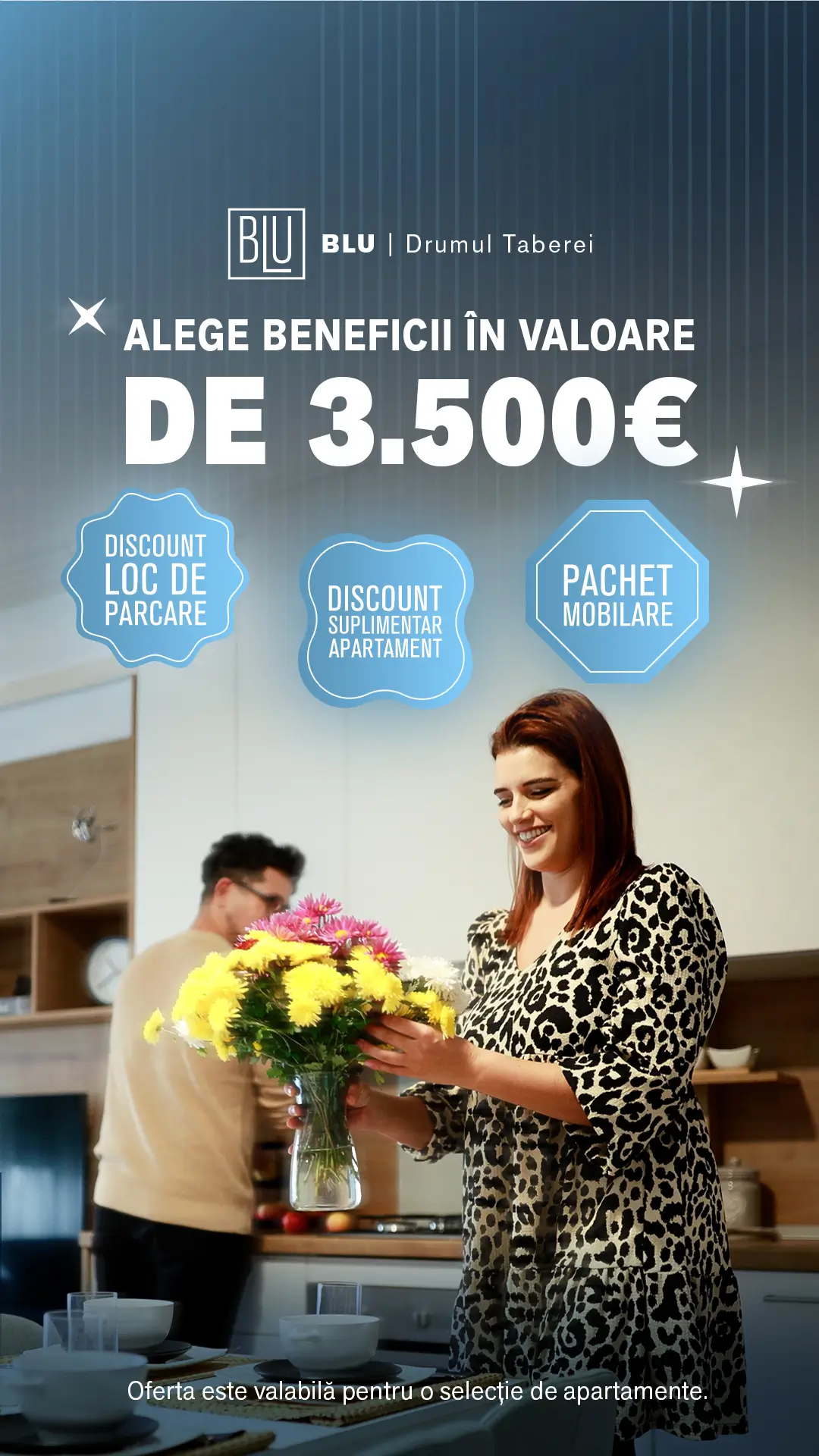 Am dezvoltat BLU Drumul Taberei cu scopul de a aduce un nou standard de locuire în Sectorul 6, prin construirea de apartamente spațioase ce au compartimentări atent gândite de către echipa de arhitecți, cât și finisaje premium, selectate de la producători de renume. De la apartamente finalizate cu 1 dormitor, 2 sau 3 camere, cu grădină, terasă și bucătărie open-space sau închisă, la BLU Drumul Taberei vei găsi locuința care se potrivește perfect stilului tău de viață.